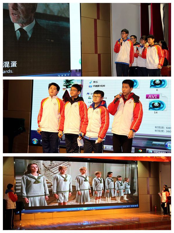 在2015年即将过去的日子里,八年级全体同学在繁重的学习之余,经过长期的准备,在圣诞节的这天,终于进行了英语配音大赛!大赛一共有十六个节目,邀请了我校六位资深老师担任评委,在科教处的大力支持下,于2015年12月25日下午3:00在演播厅隆重上演!