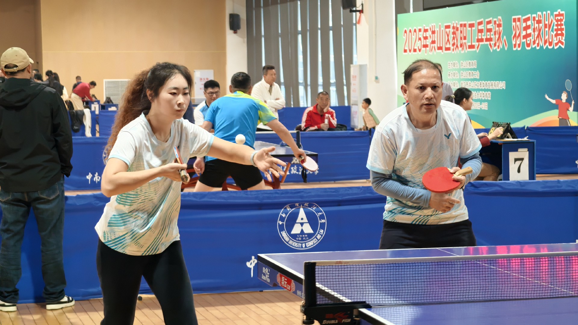 本次赛事由洪山区教育局主办,设有乒乓球、羽毛球两大项目,涵盖单打、双打等多个组别,为全区教育工作者搭建了切磋技艺、增进交流的优质平台。赛场上,我校参赛教职工秉持 “友谊第一、比赛第二” 的体育精神,以饱满的热情投入每一场比拼。