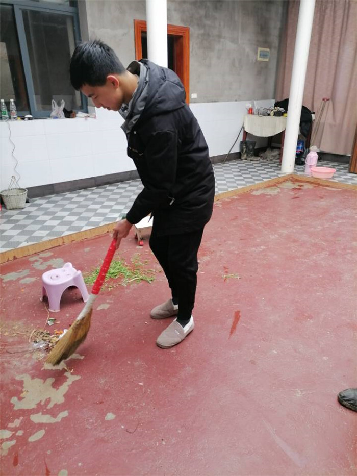 “立德树人,就是要让孩子们拥有良好的志趣,让他们不断从生活中、学习中、活动中、实践中去感悟,这样才能得到全面发展。”华一初坚持以立德树人为基本导向,总结德智体美劳“五育”并举的框架:德育为引领、智育作支撑、美育与体育为载体、劳动教育为补充,让学生在成长过程中成为更好的自己。劳动教育是全面育人不可或缺的一部分,用劳动教育可有效筑牢立德树人基石,促进学生身心健康发展。在此基础上,九年级特开展了“辞旧迎新大扫除”活动。