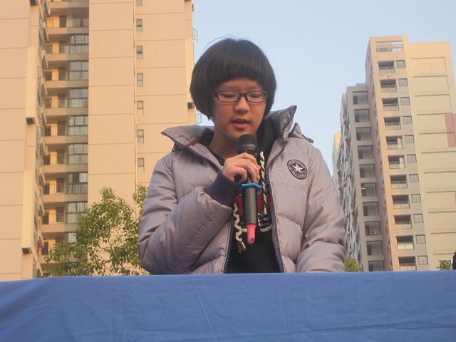 全议由九年级分管教学工作的副主任白立红老师主持。大会议程一共有三项,依次为:学生代表交流学习经验;年级主任总结讲话;科教处周杨主任作动员报告。