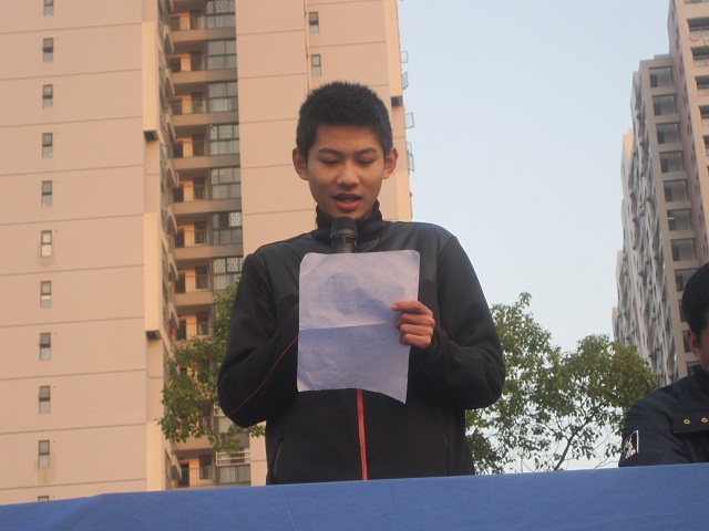 随后,年级主任汪国荣老师发言。他首先对年级前一阶段取得的成绩作了小结,然后,他以“培养好习惯”为话题,号召同学们戒骄戒躁,不断改进学习方法,提高学习效率,力争取得优异的成绩。汪主任讲话,鼓舞人心,催人猛醒,场下的同学不时与他激情互动,场面之热烈,令人感动。