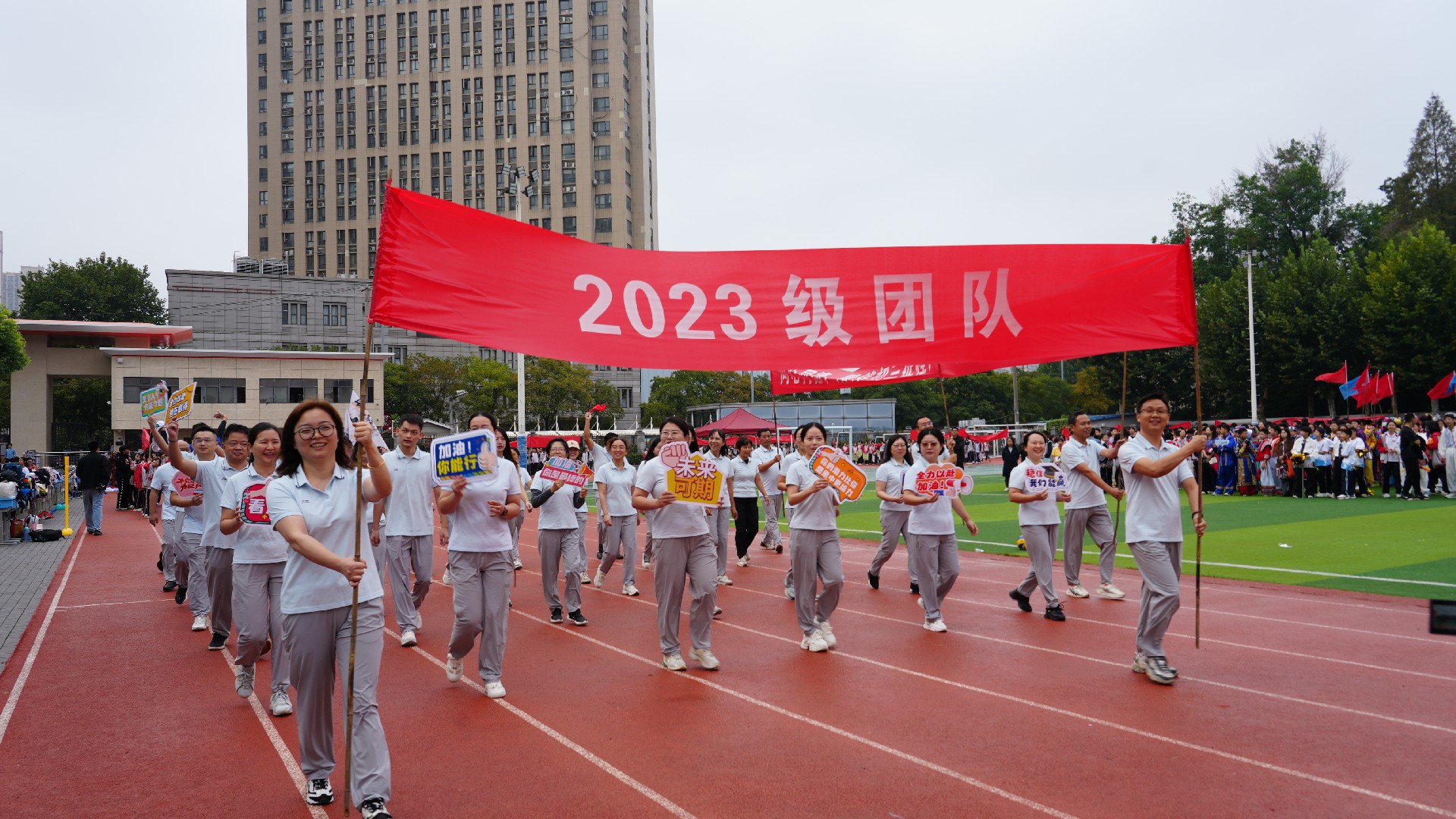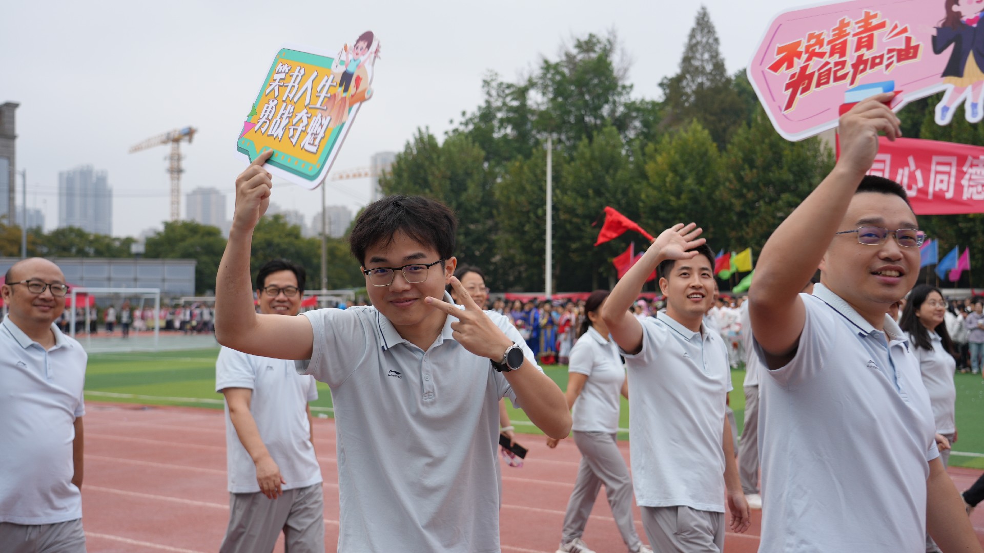 九年级方阵的整体呈现,完美诠释了家校携手、多方合力陪伴学子奋斗征程的构思。在这充满活力与希望的赛场上,九年级师生与家长同心同行,共同奔赴属于他们的辉煌征程,也为本次运动会增添了浓墨重彩的一笔。