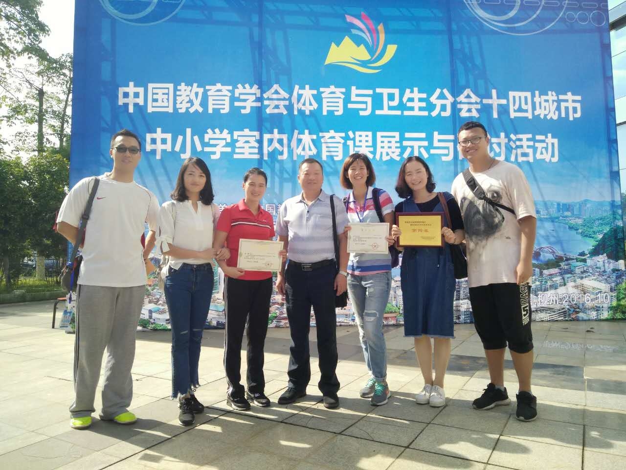 2016年10月21日,由中国教育学会体育与卫生分会主办,广西省柳州市教育局承办的“中国教育学会体育与卫生分会十四城市中小学室内体育课展示与研讨活动”在广西柳州柳州高中圆满落幕。本次展示研讨从10月17日开始,活动持续一周。通过层层选拔的基层体育教师,来自全国各地的专家评委和体育同行相聚柳州,齐享盛宴。我校体育老师王丹丹代表武汉市参加此次活动,其授课内容《篮球裁判手势》获得一等奖第一名的好成绩。