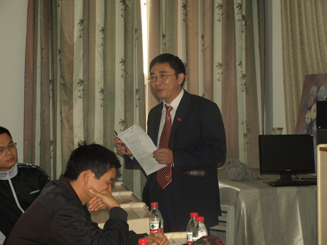 下图:初三年级主任、语文教师汪国荣老师主持交流会