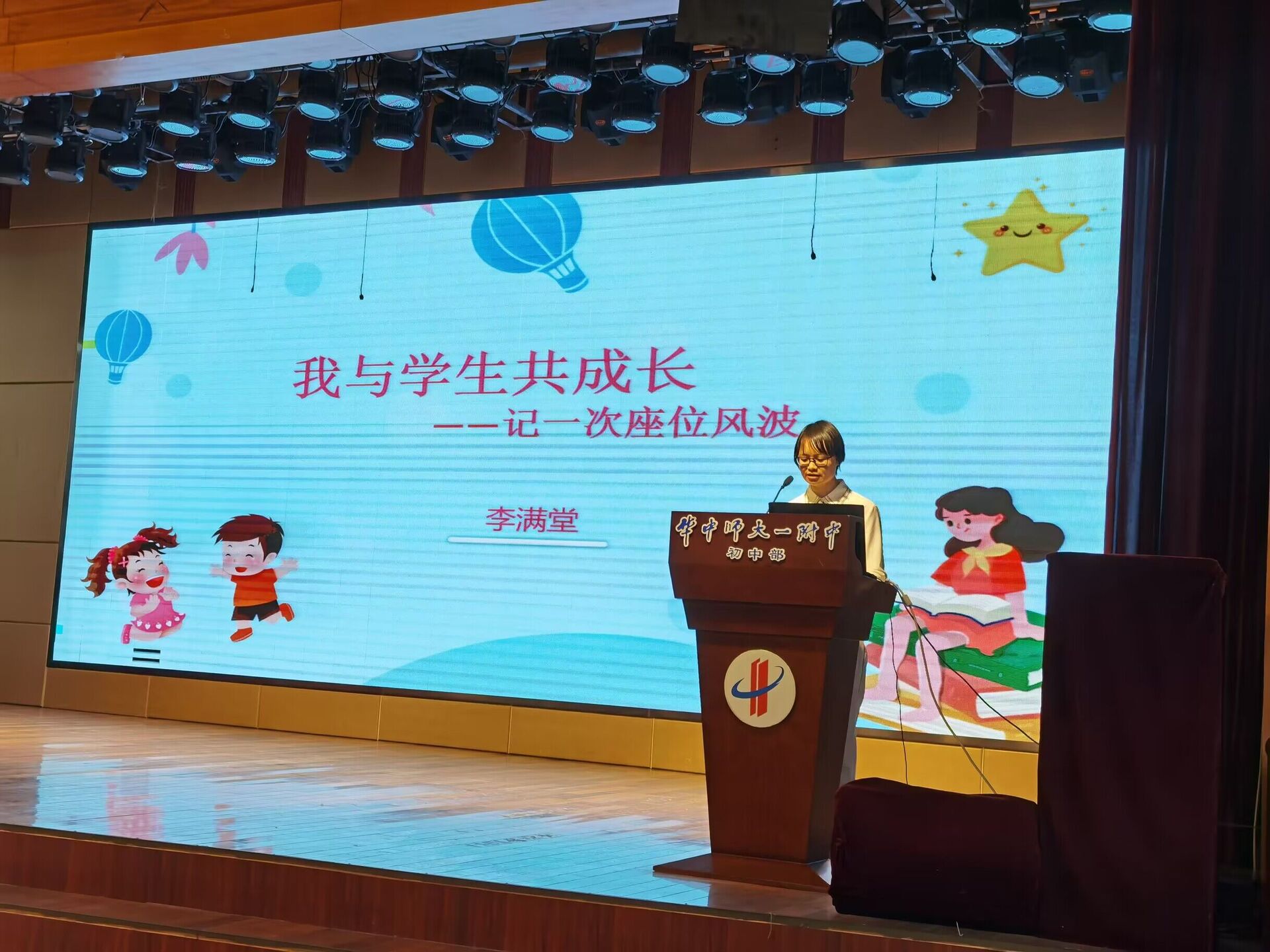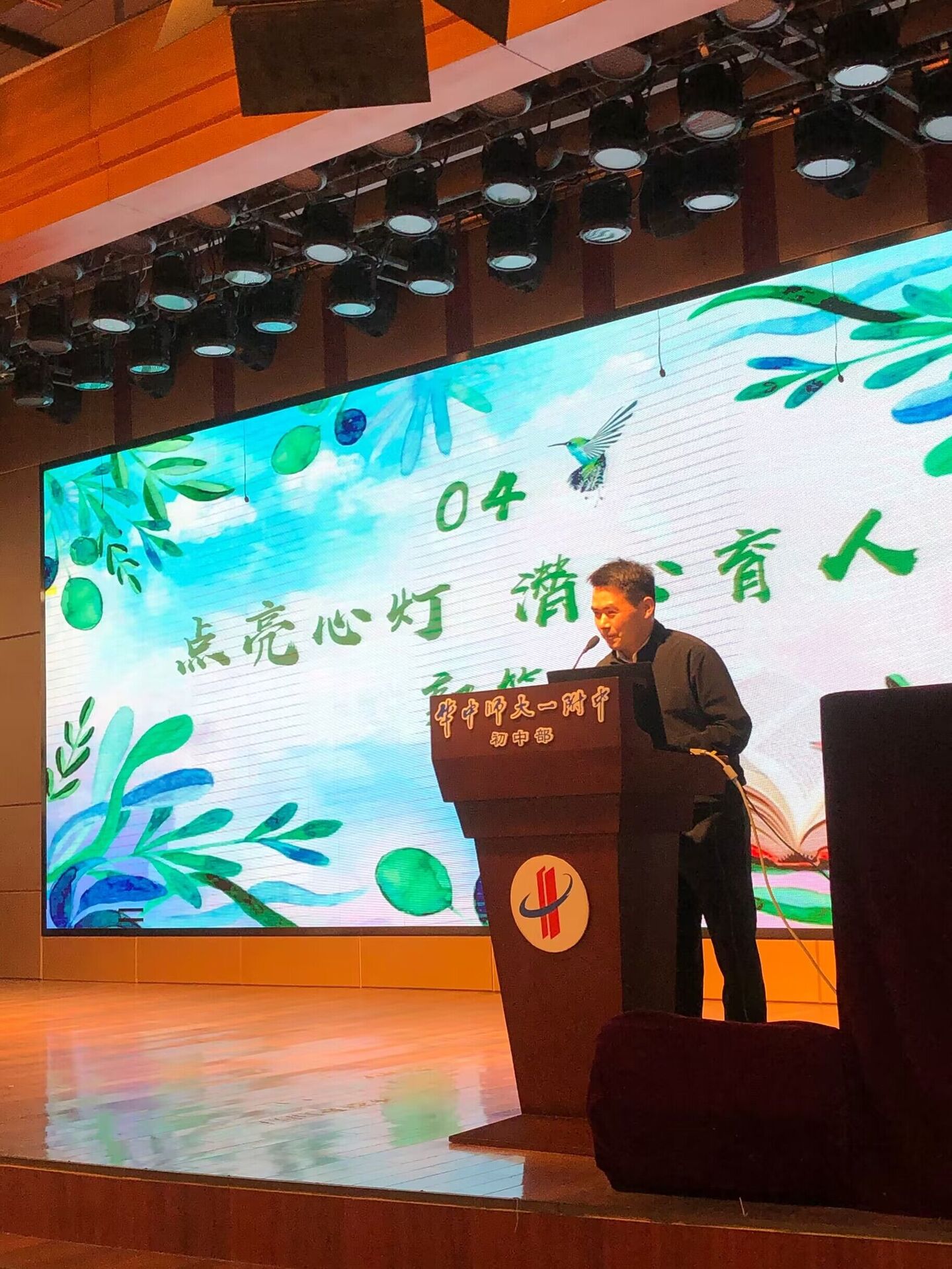 本次活动由学工处袁辰老师主持,全校教职工到场观看。学工副校长叶文娇老师、教学副校长吴绾茹老师、校团委书记王丹丹老师、八年级德育主任闫冰老师、七年级德育主任陈进老师、2022年校级资深班主任黎江玲老师、2022年校级卓越班主任何华斌老师作为评委观看了各位老师的演讲。