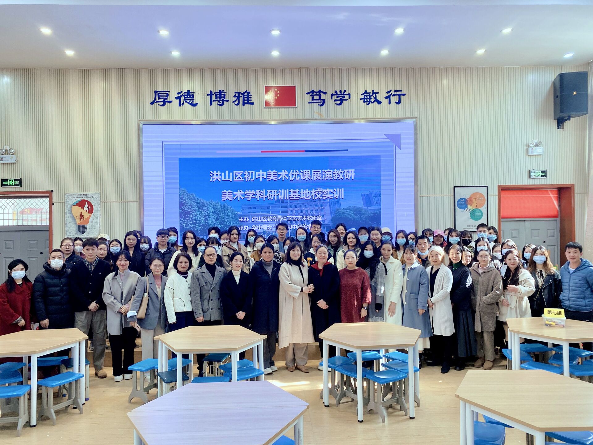 上图-洪山区初中美术优课展演教研、美术学科研训基地校实训合影