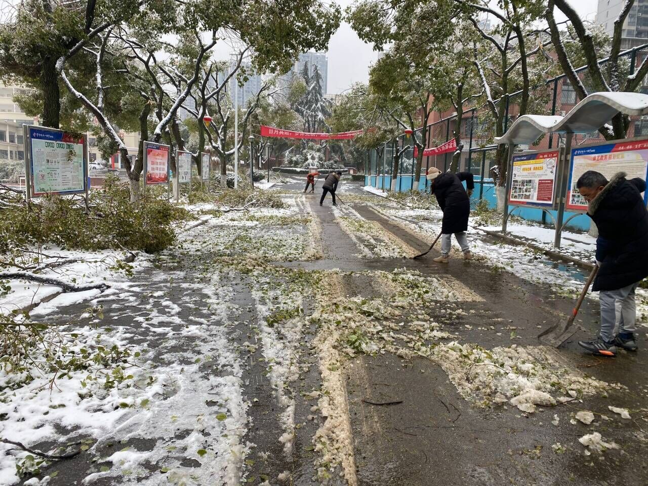连日来,寒潮侵袭,受低温雨雪冰冻天气影响,银装素裹下的校园也面临着重重安全隐患。冻雨与大雪导致的树木断枝掉落、道路积雪冰冻等问题深深牵动着大家的心。