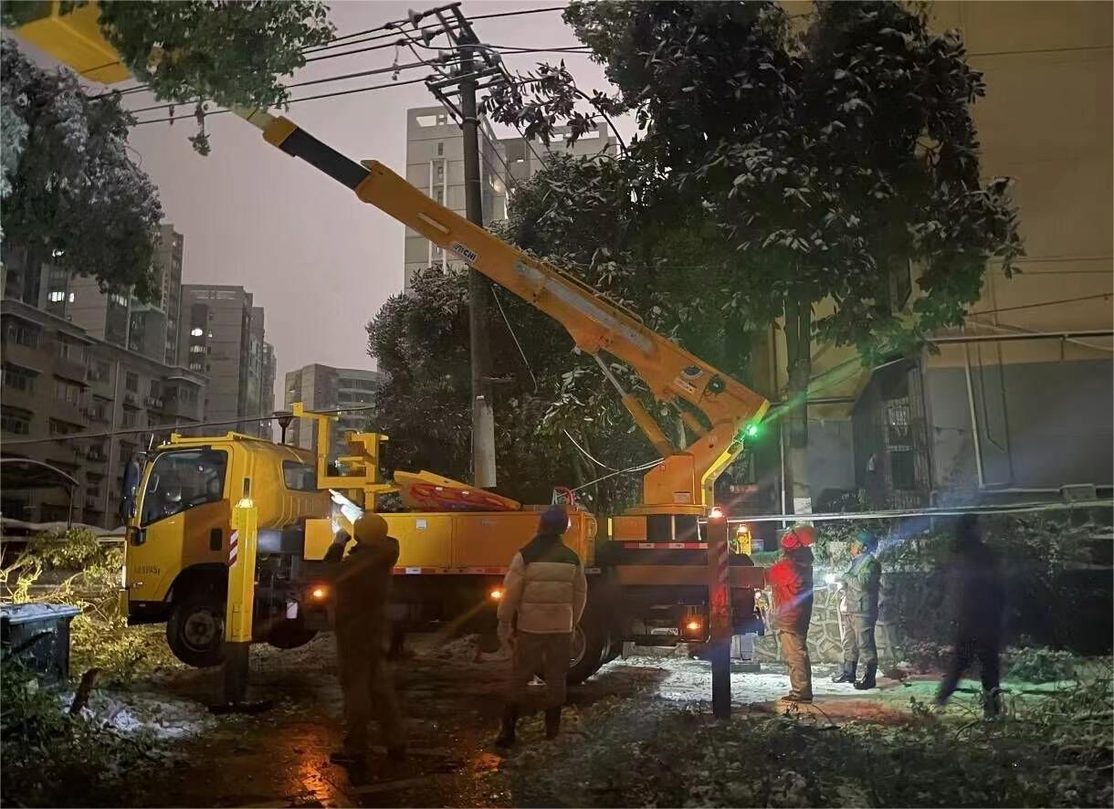 2月5日凌晨三点多,在多方力量顶风冒雪、昼夜奋战下,最终完成了隐患树枝修剪和电力恢复工作。