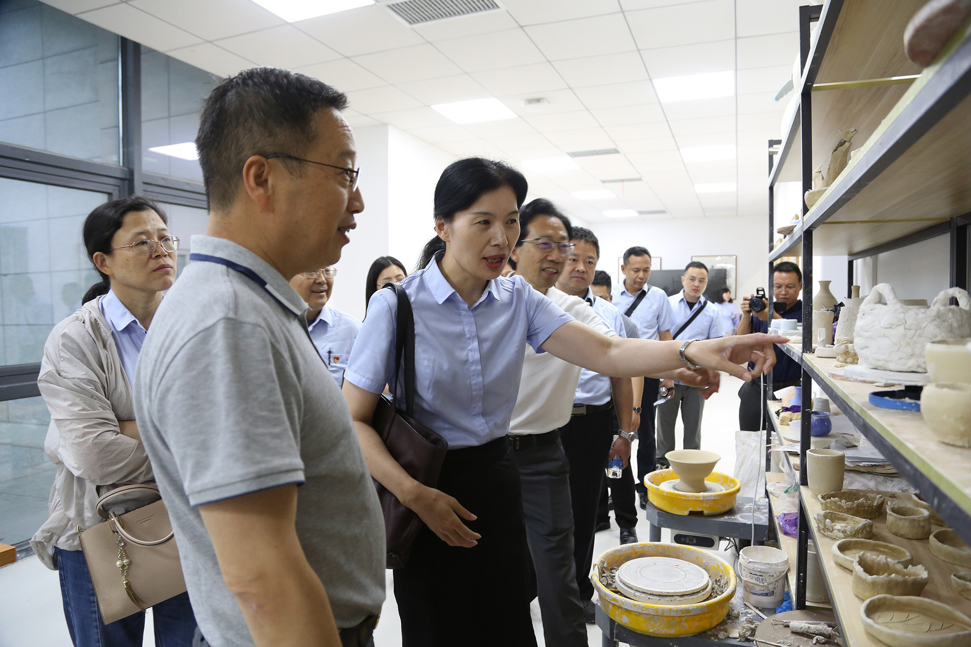 听评课后,初中部全体骨干教师在贵阳学校领导的热情陪同下,参观了校陶艺馆、美术馆、图书馆。一件件或拙朴或细腻的陶艺作品让我们感受到孩子们的创意和才华。每一件或色彩鲜明或构图大胆或笔触细腻的美术作品都蕴含着孩子们独特的视角和创造力。