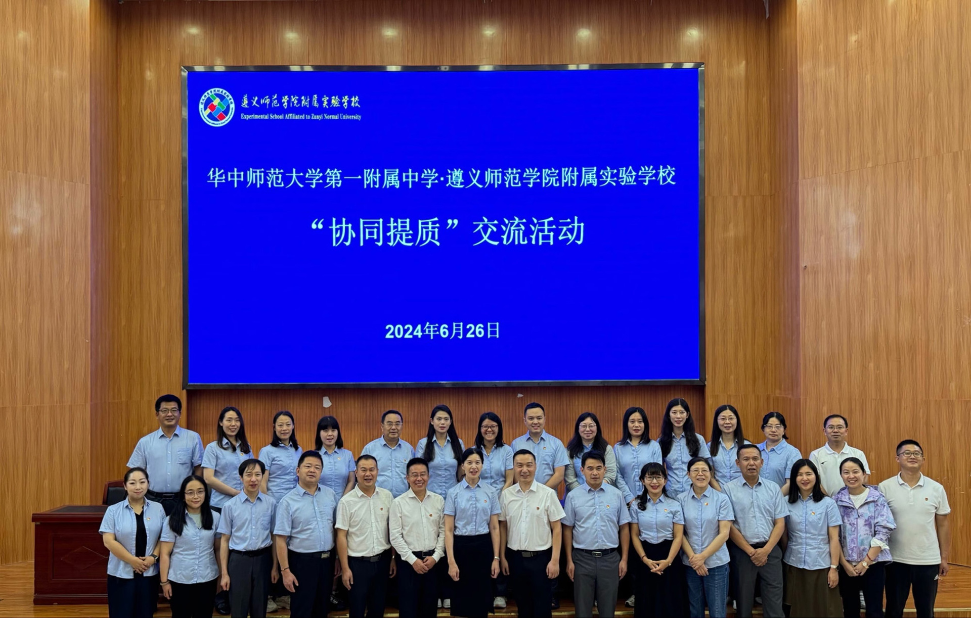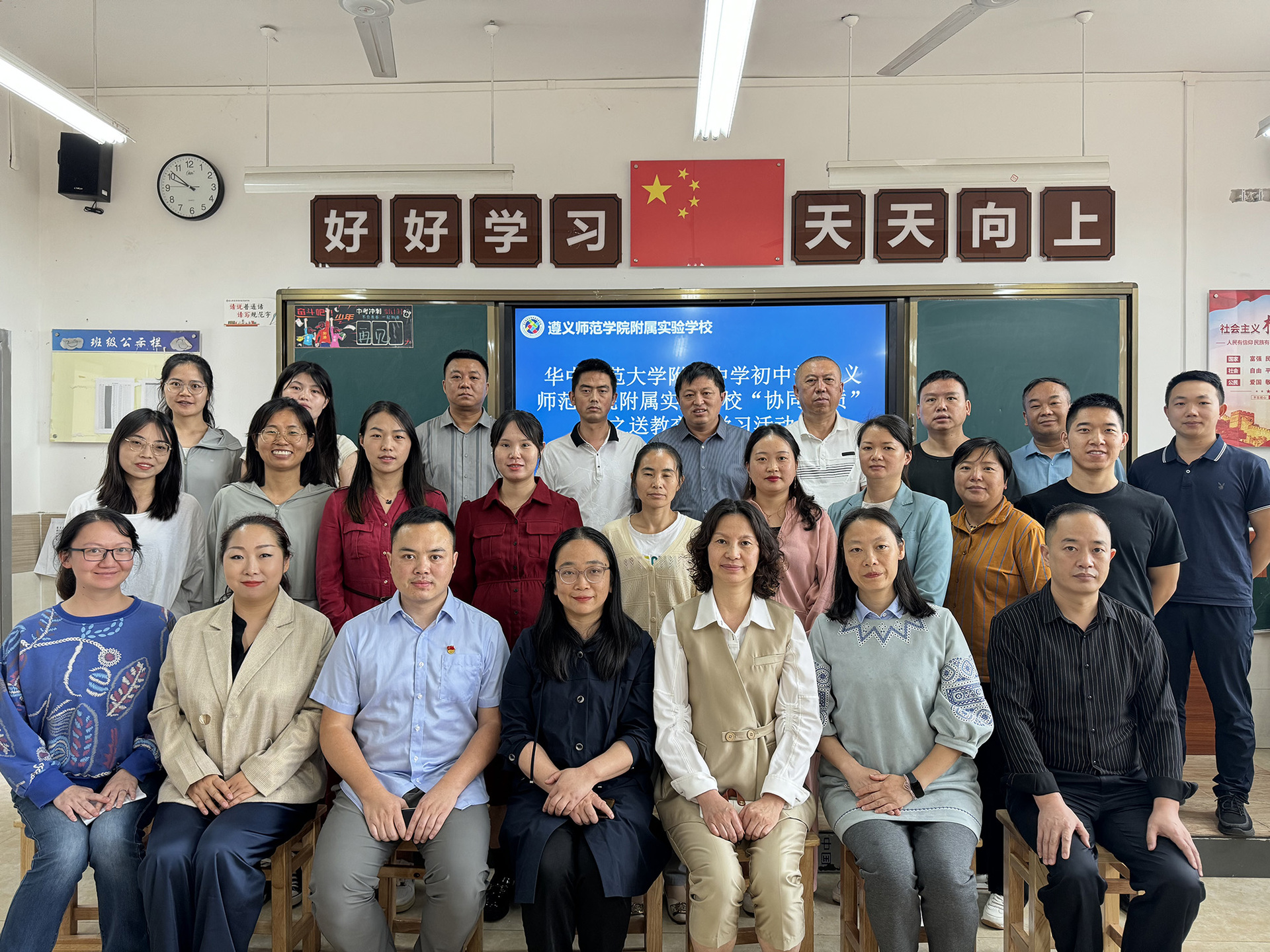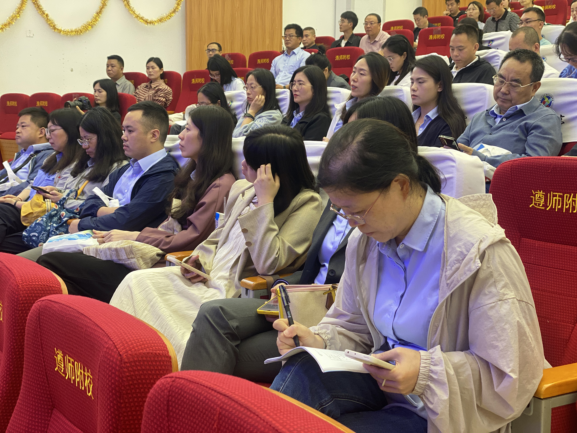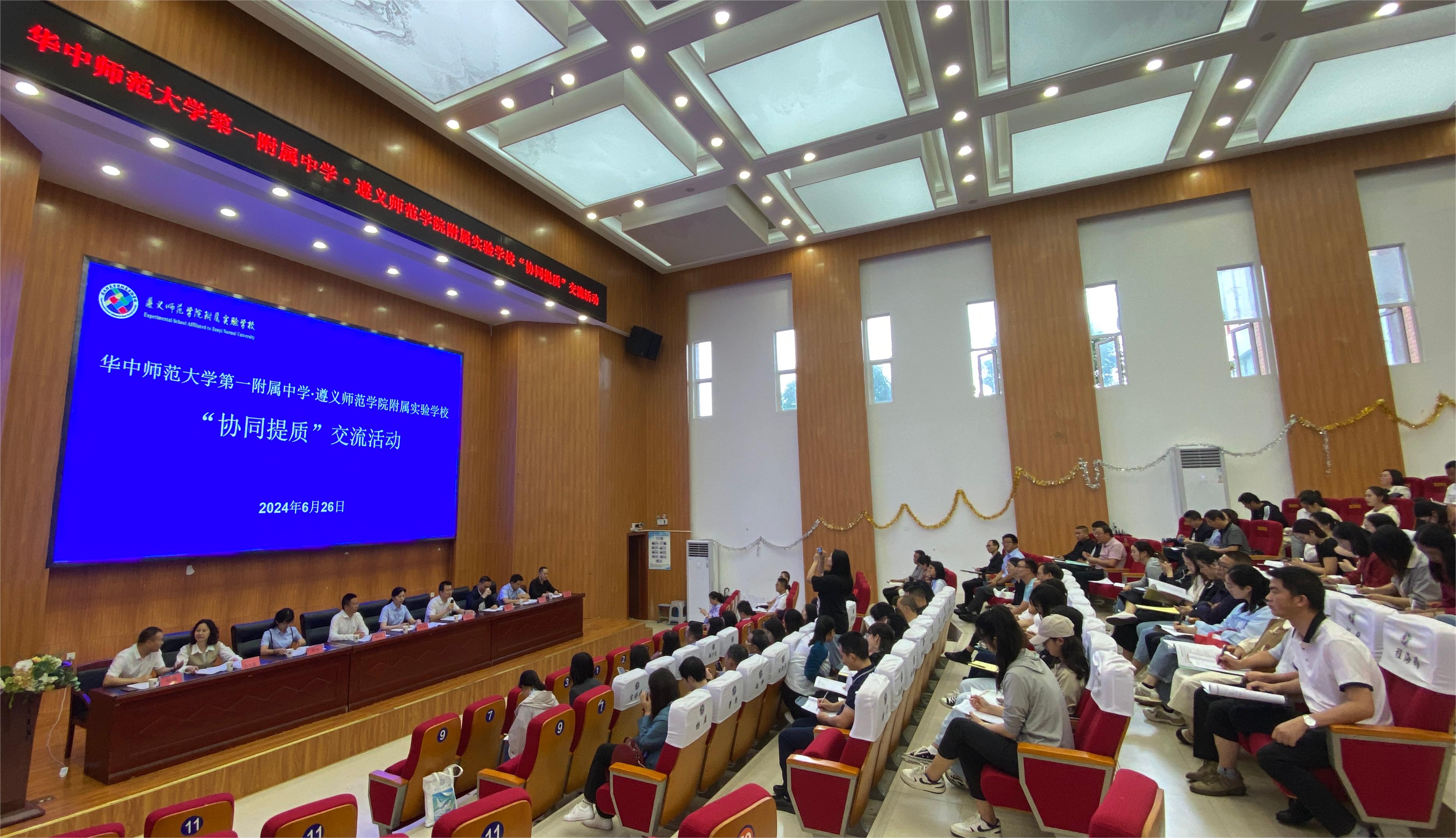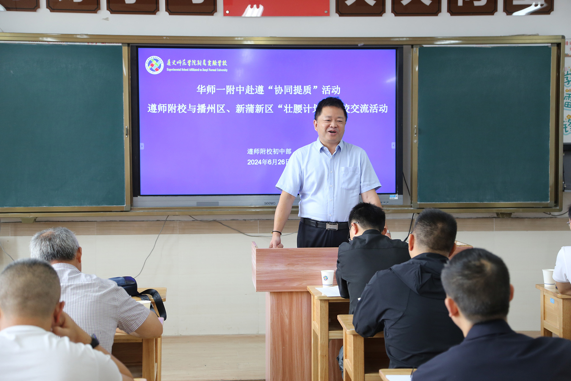 6月26日上午6时许,华一初骨干教师团队出发前往遵义师范学院附属实验学校,与该校开展“协同提质”交流活动。遵师附校初中部全体语文、数学、英语、物理、化学学科教师和教研处工作人员,以及播州区、新蒲新区(四十七中)“壮腰计划”学校教师代表共同参加了见面会。会议由遵师附校初中部杨洪主任主持。