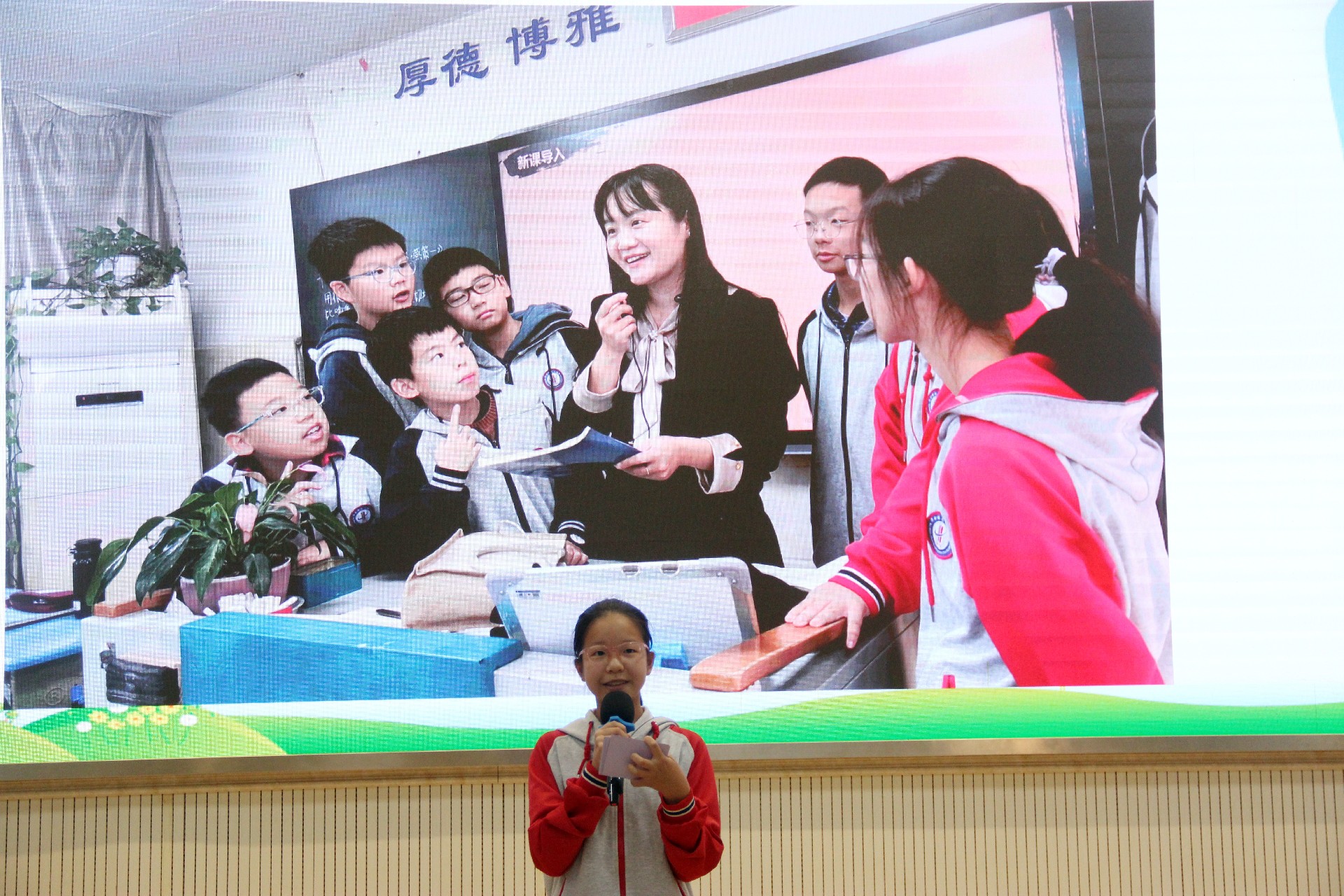 好老师启智润心,帮助学生扣好人生第一粒扣子;好老师因材施教,以爱和尊重守护每个孩子成长。805班许嘉淇、814班熊晨曦、703班梅语彤、 712班张瑞涵四位学生代表上台讲述自己心中“好老师”的样子,分享他们与老师之间的精彩故事。
