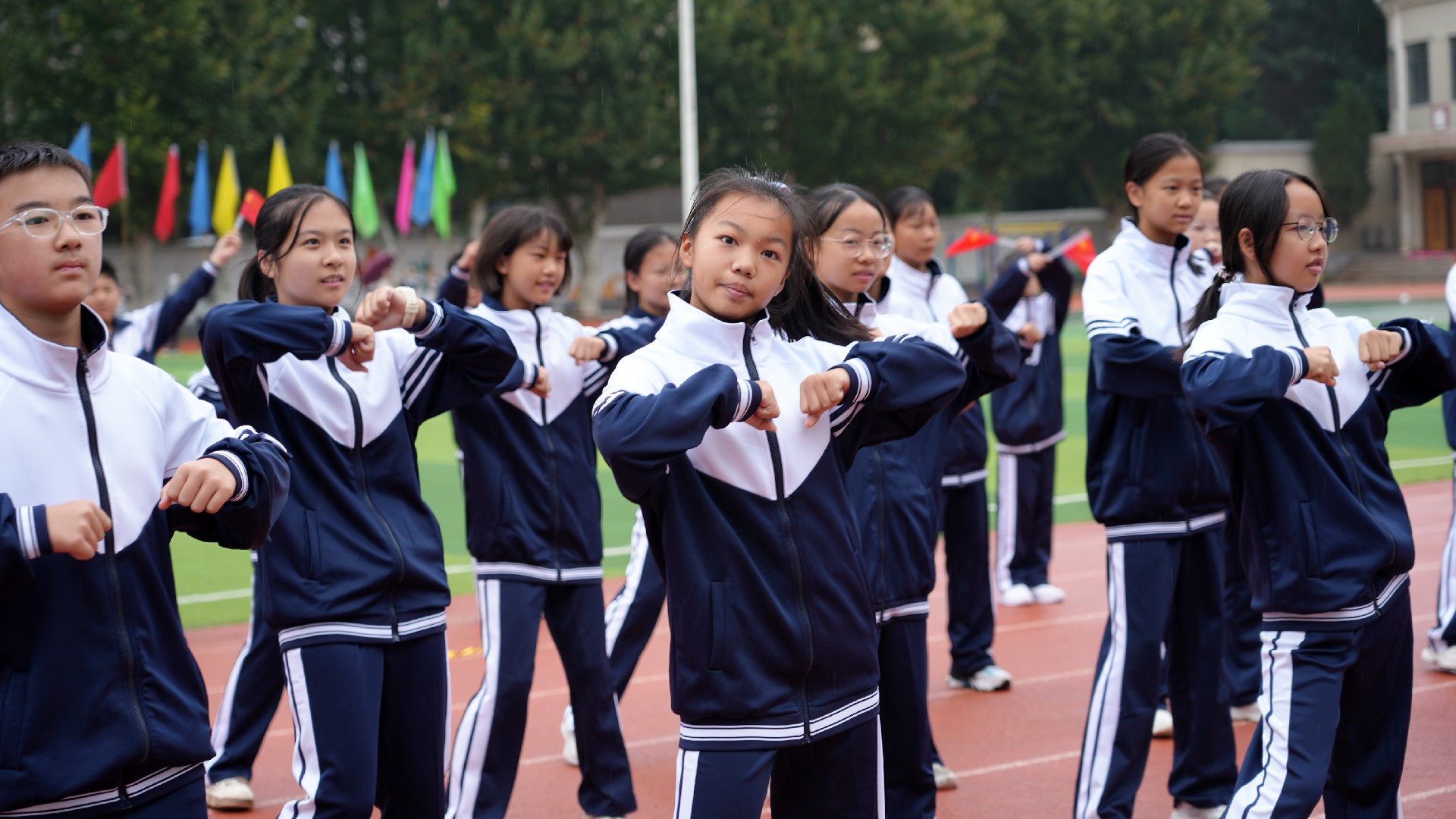 三个年级的方阵多元展示青春活力,九年级彩旗方队率先自信登场。五彩旗帜猎猎飞扬,阳光少年步伐坚定,此刻,我们雄心壮志向未来。七年级女子匕首操方队英姿飒爽,来自15个班的姑娘们,动作利落、口号嘹亮,一招一式,掷地有声。八年级啦啦操方队舞动青春,击掌、跃动、站桩、挥拳……演绎出阳光动人的青春诗乐章与壮丽多姿的华夏山河图。