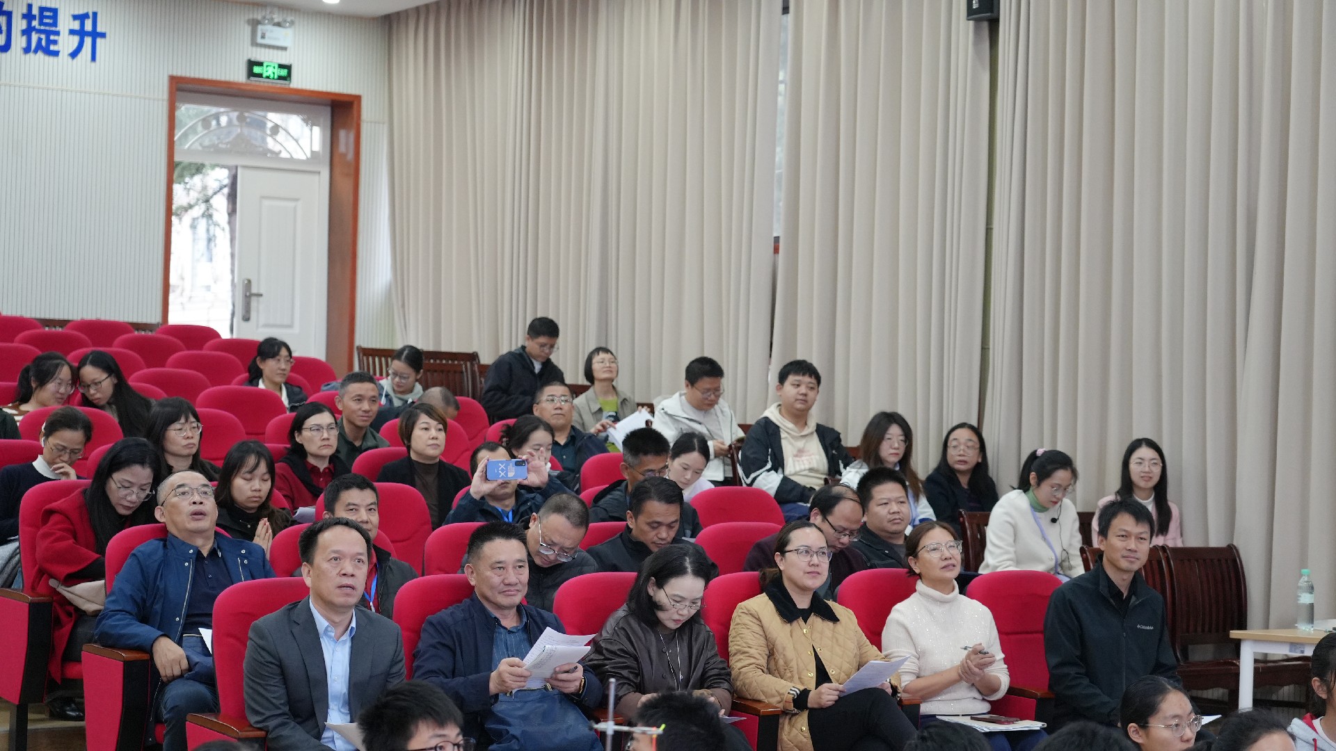 11月7日,江夏区初中数学骨干教师团赴华师一附中初中部开展“聚焦核心素养,共探高效课堂”跨区域校际交流活动。洪山区初中数学教研员张璟怡、江夏区教师继续教育中心主任夏建明、江夏区教研室数学教研员蔡智明,以及江夏区50名骨干教师与我校八年级全体数学教师共同参与。活动由八年级数学备课组长邹存乐主持。