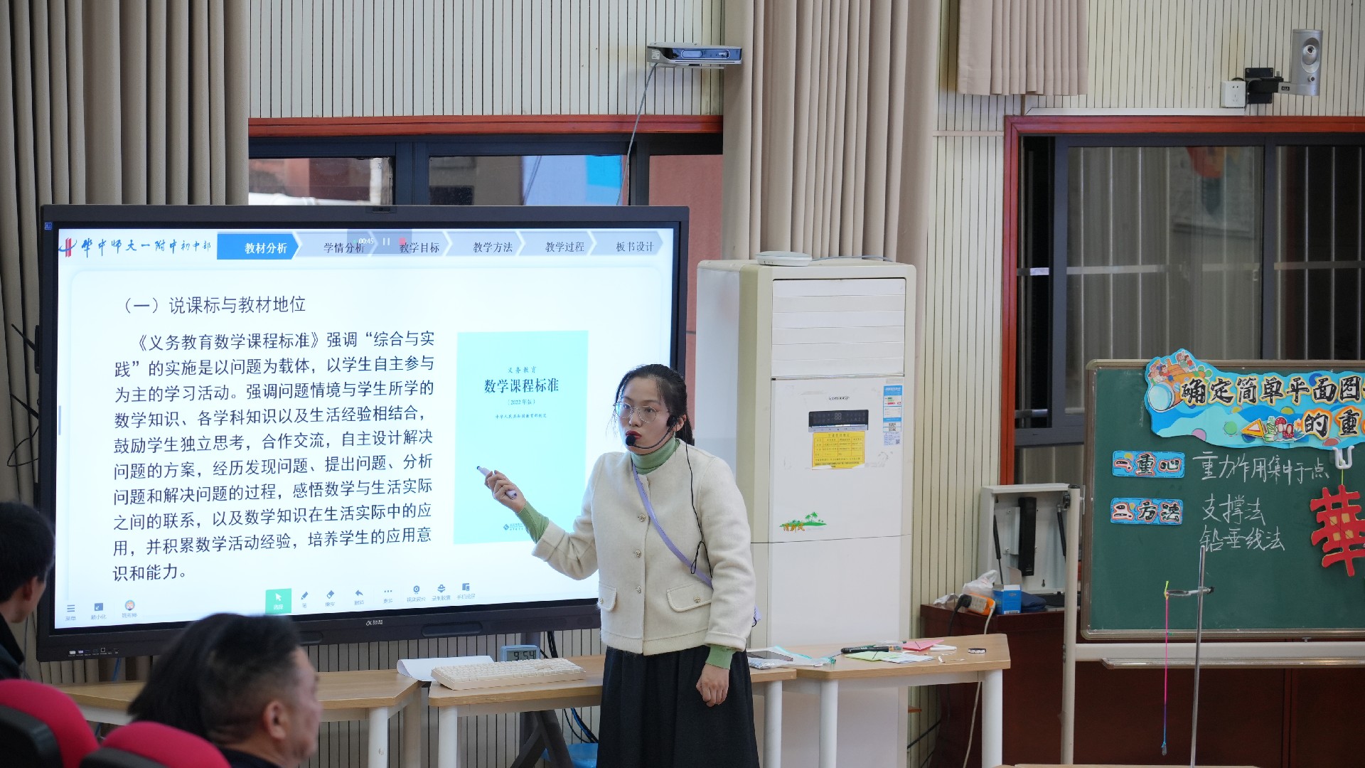 随后,姚彬婷老师就课程设计与教学反思进行说课。骨干教师姚曼、张君秀以《跳出“刷题”陷阱:用真题指路,让错题说话》为题作主题分享。她们结合八年级数学组的教学改革实践,系统介绍了“20分钟真题精练”教学模式、真题筛选的四大标准、错题本规范使用与分层指导策略,为“双减”背景下优化作业设计、提升课堂效率提供了可借鉴的实践路径。