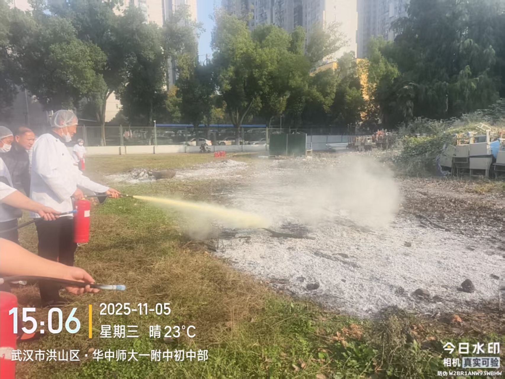 在全国消防日来临之际,为切实增强师生员工的消防安全意识,普及消防知识,提升应对火灾的自救互救能力,11月5日,学校成功举办了2025年秋季消防安全演习活动。七年级学生代表、青年教师以及学校食堂、物业工作人员全员参与。