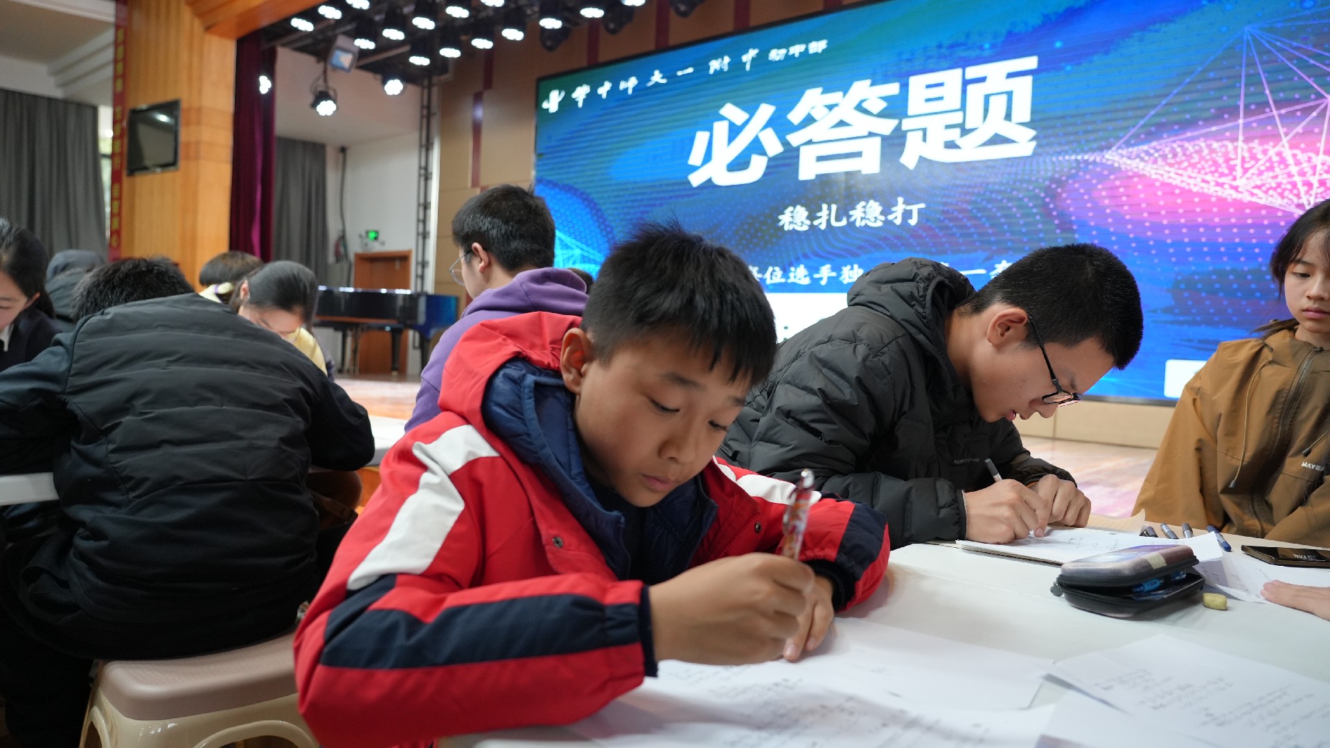 “稳扎稳打”个人必答题环节,选手们沉着伏案、细心演算,有理数混合运算、整式加减、一元一次方程等题型轮番登场,每一道题的精准作答都彰显着日常积累的扎实功底;