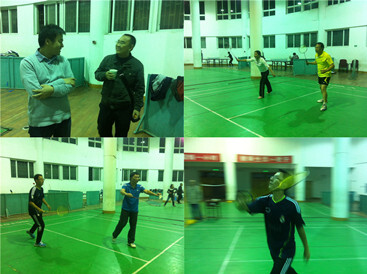 2014年11月12日下午应我校教职工羽毛球比赛开展,初一年级部门全体教师以饱满的热情积极参与,初赛选拔中教师们兴致高涨,抖擞精神,锻炼健康体魄。
