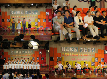 主持人:801班 刘定东 周歆悦 710班 胡晟轩 黄玉婷1、开场舞《青花瓷》表演者(教师):但林 袁辰 董玉婷 李单 田纯 杨田2、跆拳道表演者:初一跆拳道选修班3、独唱——《我的歌声里》表演者:周一闻(807班)4、爵士舞表演者:朱智丽(808班) 熊喆(810班)5、诗朗诵《相信未来》表演者:王婧怡(706班)6、啦啦···