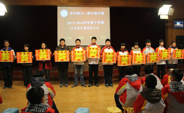 通讯员:袁辰 邓晓仲 2014年2月17日下午,我校全体师生迎来了新学期第一次盛大集会----开学典礼。典礼由周鸿武主任主持,庄严的国歌为典礼拉开了序幕。 首先,由学工处方芳主任致辞《美丽的规则》,对上学期同学们在学习、日常行为等方面进行了总结。 第二项,科教处主任周杨中原致辞,总结了科教处上学期的各项工作,希望学···