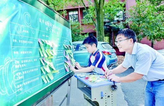 楚天都市报讯(记者柯称 黄士峰 通讯员童婷 章元元)“老师,您自己学习吗?”“监考时那么多人,老师您真能看见我?”昨日一早,一块写满“师生真心话”有趣问题的黑板,成为华师一附中初中部庆祝教师节系列活动的最大亮点。记者看到,这些题目分为两部分。“您觉得我们辛苦吗?&rdqu···