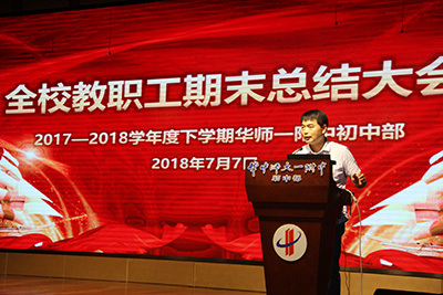 7月7日上午8:30,华师一附中初中部全校教职工总结大会在厚德楼三楼演播厅举行。大会分为各处室、年级进行工作总结汇报和杨校长作教育思想大讨论动员讲话两部分内容,学校行政副校长周杨中原主持了会议。图为周杨中原校长主持大会图为会议现场姚曼、李先艳、周海涛三位年级主任分别代表初三、初二、初一年级汇报了本学年的年···