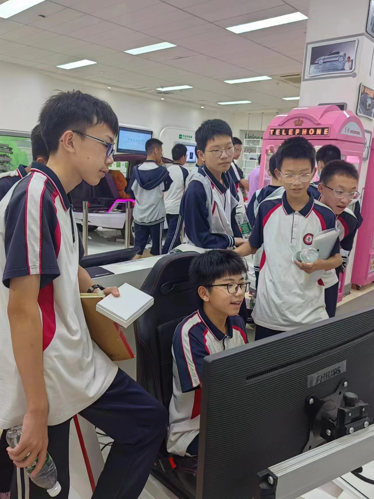 6月3日下午,705班全体同学在班主任但新芳老师的带领下前往中国车都,走进东风本田汽车知识见习基地开展研学活动,触碰科技前沿,探索未来世界。