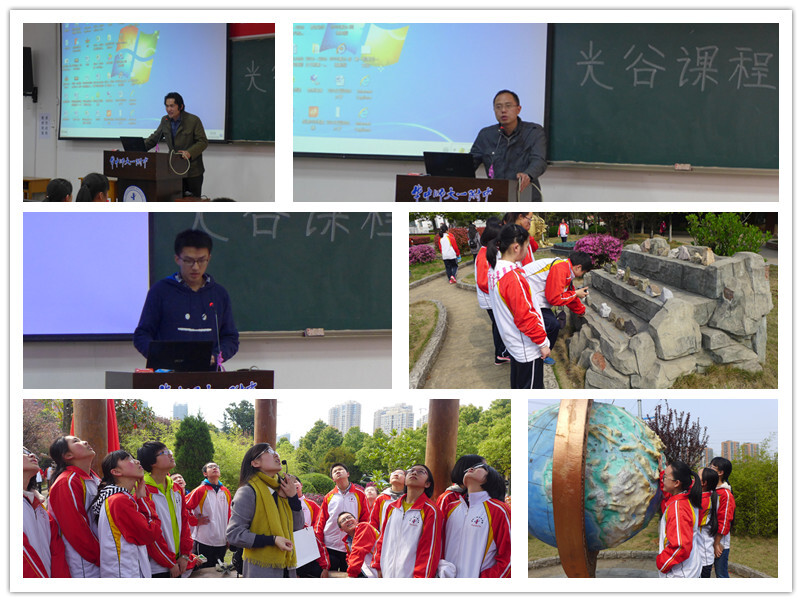 结束了地理信息科技馆一行,同学们有序随车前往华师一高中部,提前抵达的一批同学在陈丽娟老师的带领下,走进地理园,借助岩石标本、地震仪模型、大型湖北地形图、中国地形图、世界地形图、各种地貌模型、可以转动的地形地球仪,进行了一堂别开生面的户外地理课。